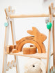 This Montessori toy wooden pyramid is crafted to encourage the development of hand-eye coordination and motor skills in toddlers. For safe play, we shape small baby stacking Triangles, Square or Star with smooth round edges. To make baby stacking a wonderful toy for little ones, order personalized natural wooden stacker toys. Made of naturally beautiful alder.